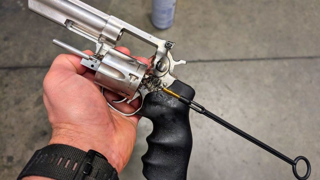 You don’t need a bench or specialized tools to keep a revolver running in the field. A brush, a rag, and a little oil go a long way.